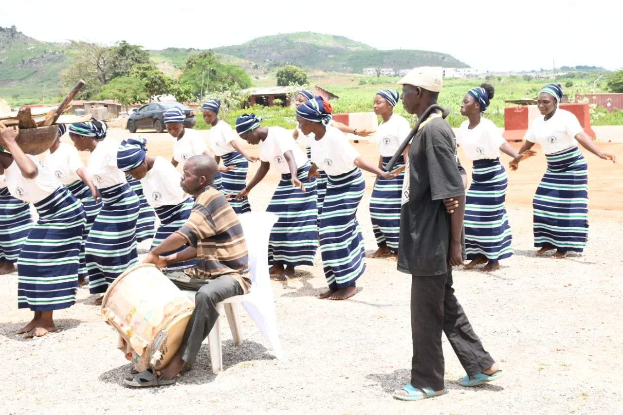 Dancers at a World Rivers Day event on the bank of the Igbesa River