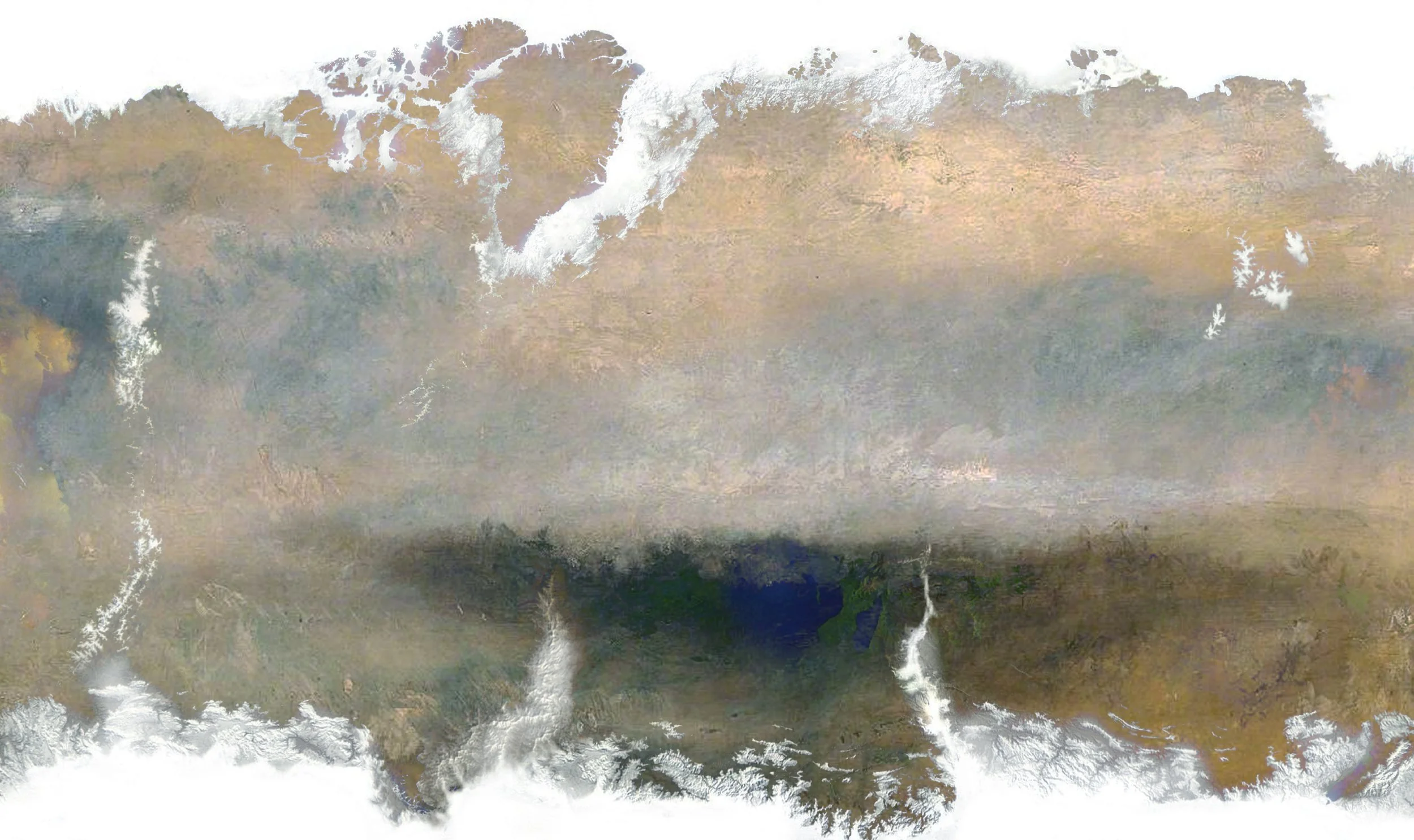 The Spilhaus projection, developed by Athelstan Frederick Spilhaus in 1979, breaks the convention of a humanized Ocean, depicting the Ocean instead as a single unbroken water body bounded by continental landmasses. This projection swaps out the familiar prominent representations of land in favor of the all-important oceanic interchange, showing the Ocean as a continuous unit. The title of this study is especially intriguing: “To see the Oceans, slice up the Land” (Spilhaus, A., 1979).